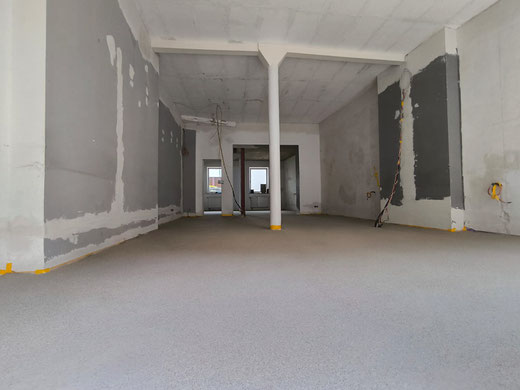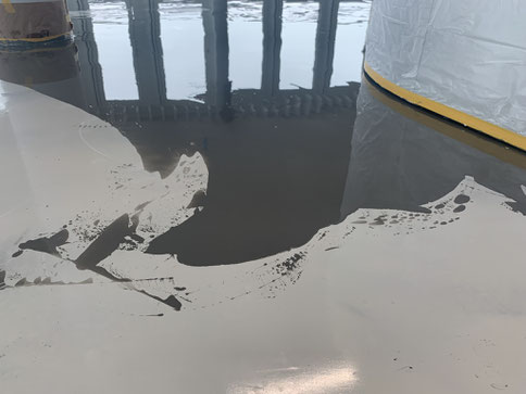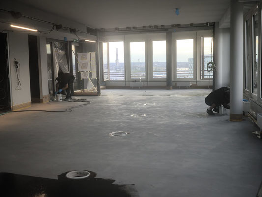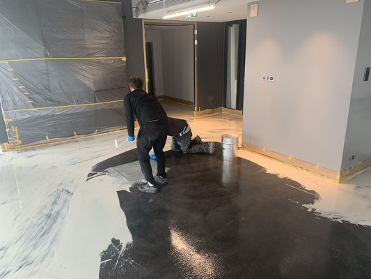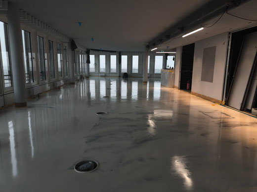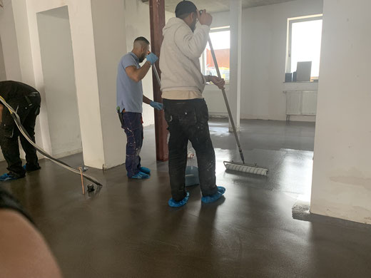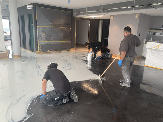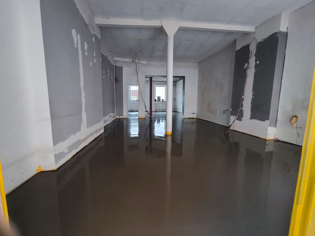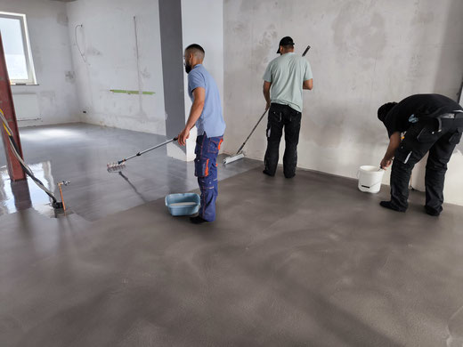 Verlaufsbeschichtung + Spachtelmasse Betongrau