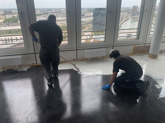 Auftragen von 2-Komponenten farbige Grundierung auf Epoxidharzbasis.