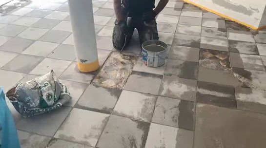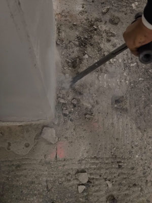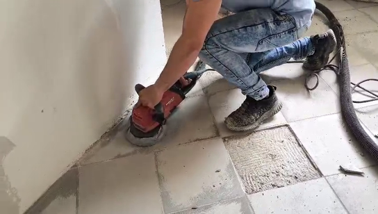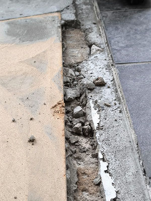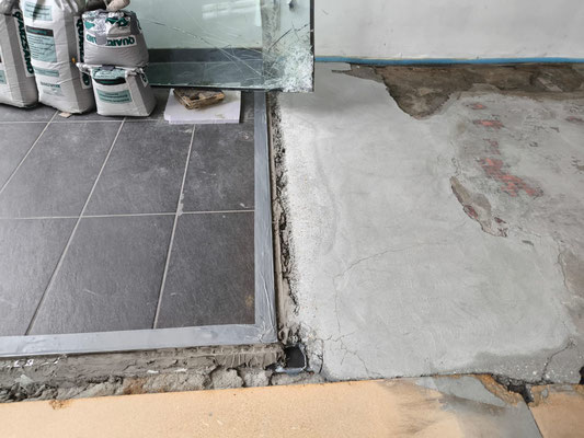 Lose Fliesen finden durch abklopfen und Schwachstellen (gebrochene Fliesen, Hohlräume etc. ) entfernen.