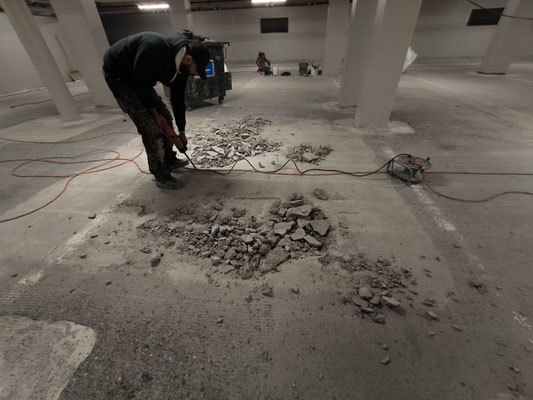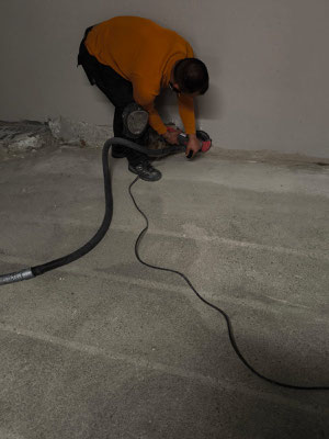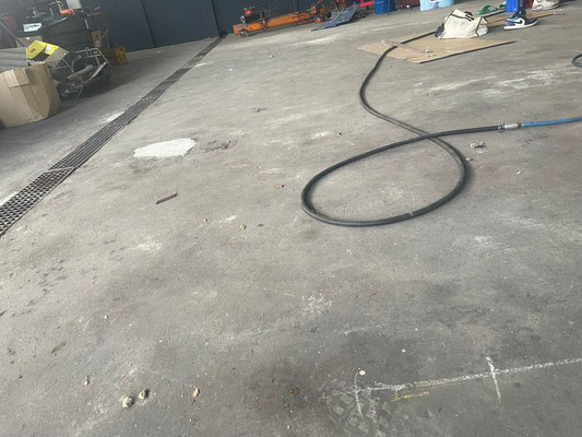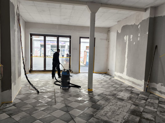 Komplette Fläche, reinigen und absaugen mit Industriesauger.