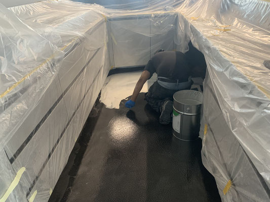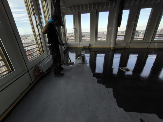 Eine 2K Versiegelung wird ein zweites Mal aufgetragen.