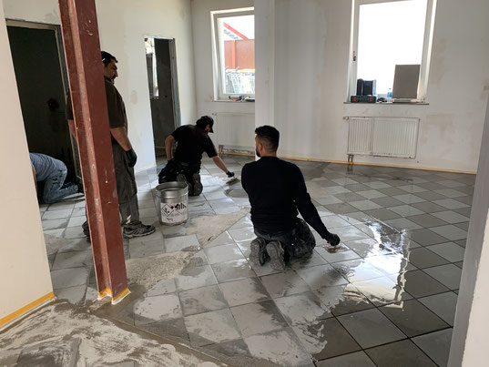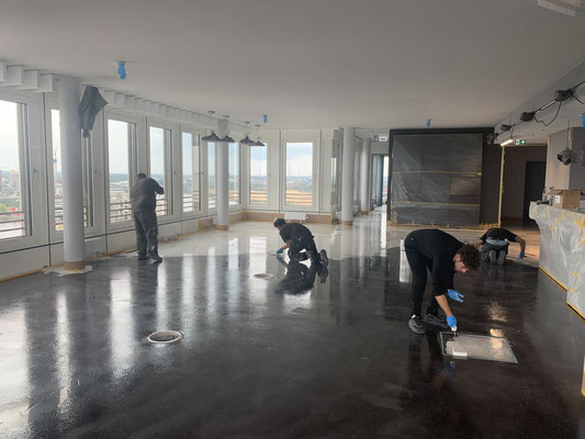 Auf Wunsch des Kunden, decken wir den Boden für nachfolgenden Arbeiten ab.