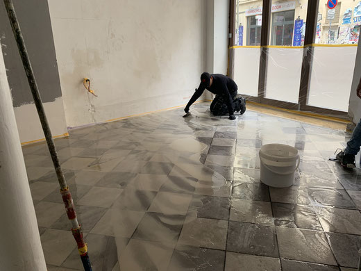 wird der Boden geschliffen.