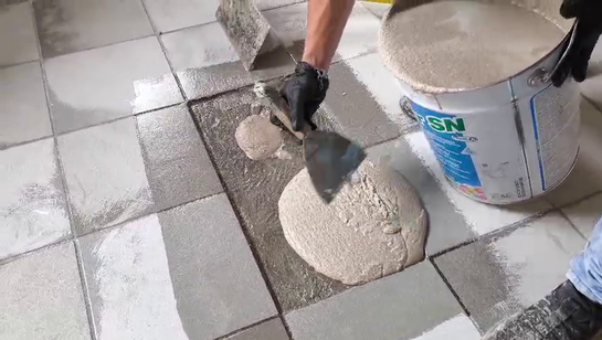 Auftragen des Epoxidharz 2K, um die Fliesenfugen